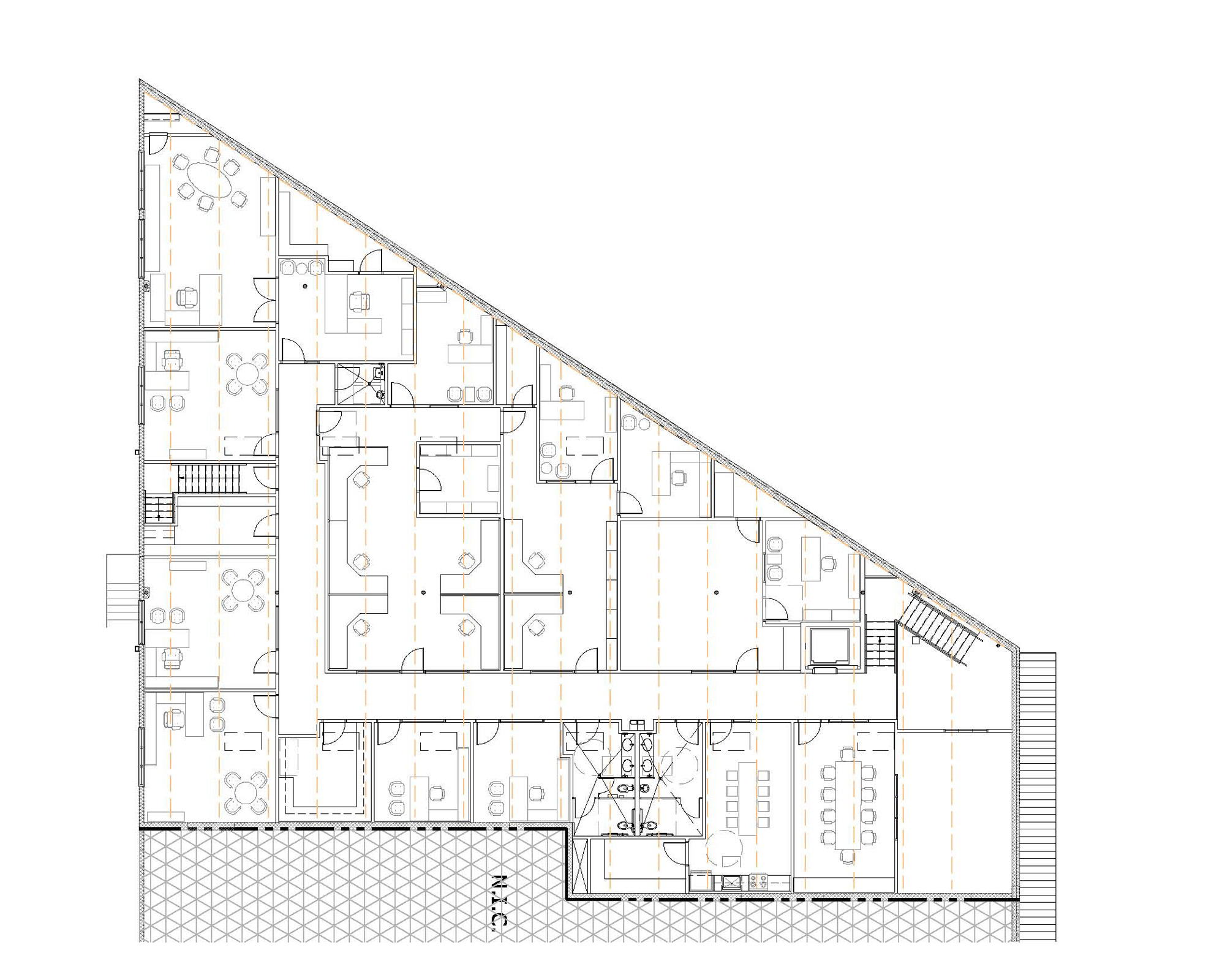 The new 2-story office is interior addition to the 50,000 SF existing warehouse built with CMU walls. The scope of work includes the 2nd-floor structure design and its support, featuring the 16,000 SF area industrial and warehouse spaces on the 1st and admin offices on the 2nd floor. The site improvements with an accessible route are provided to accessible spaces. Modern-Industrial interiors bring comfort and freshness to the environment.